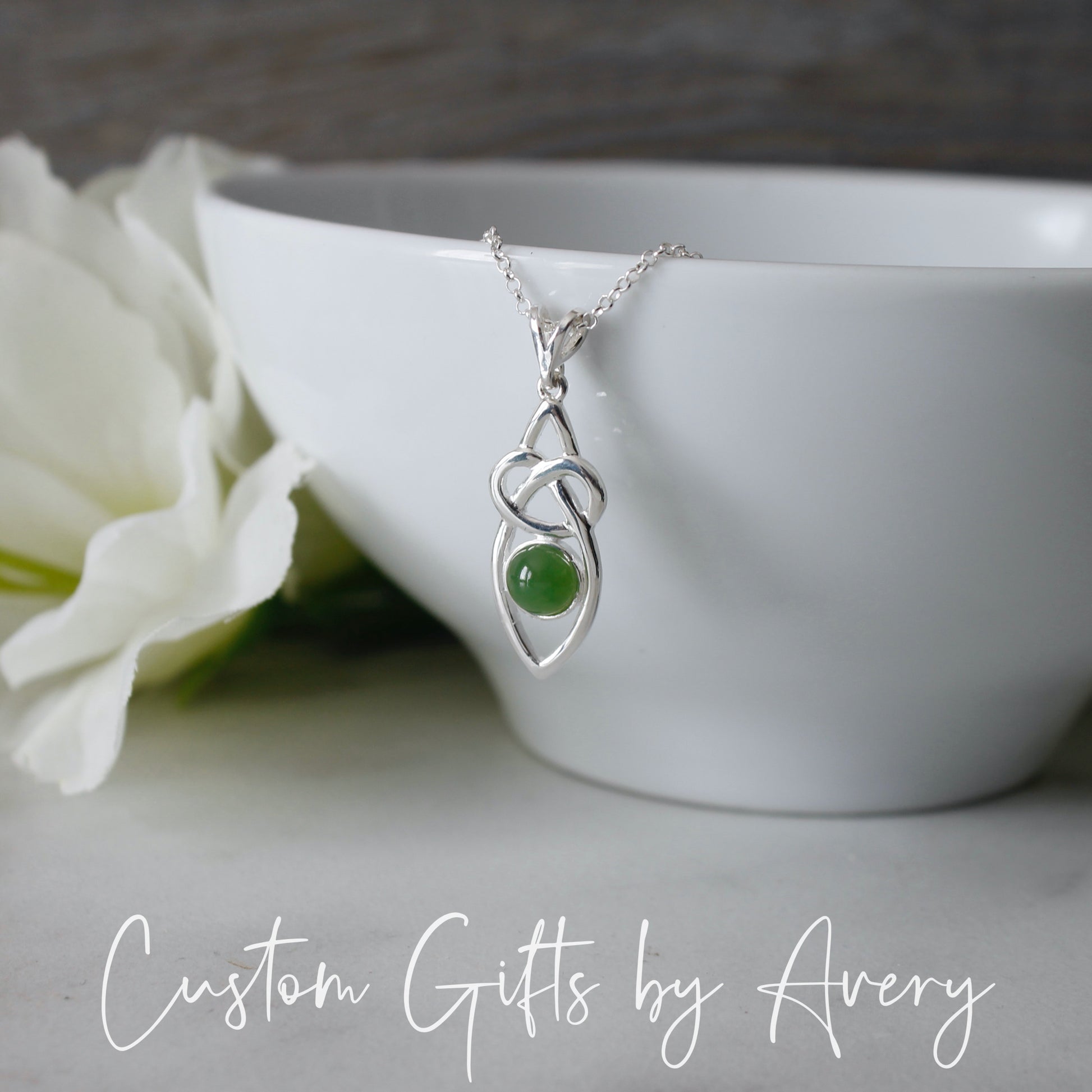 Sterling Silver Celtic Knot Necklace with Canadian Jade Nephrite