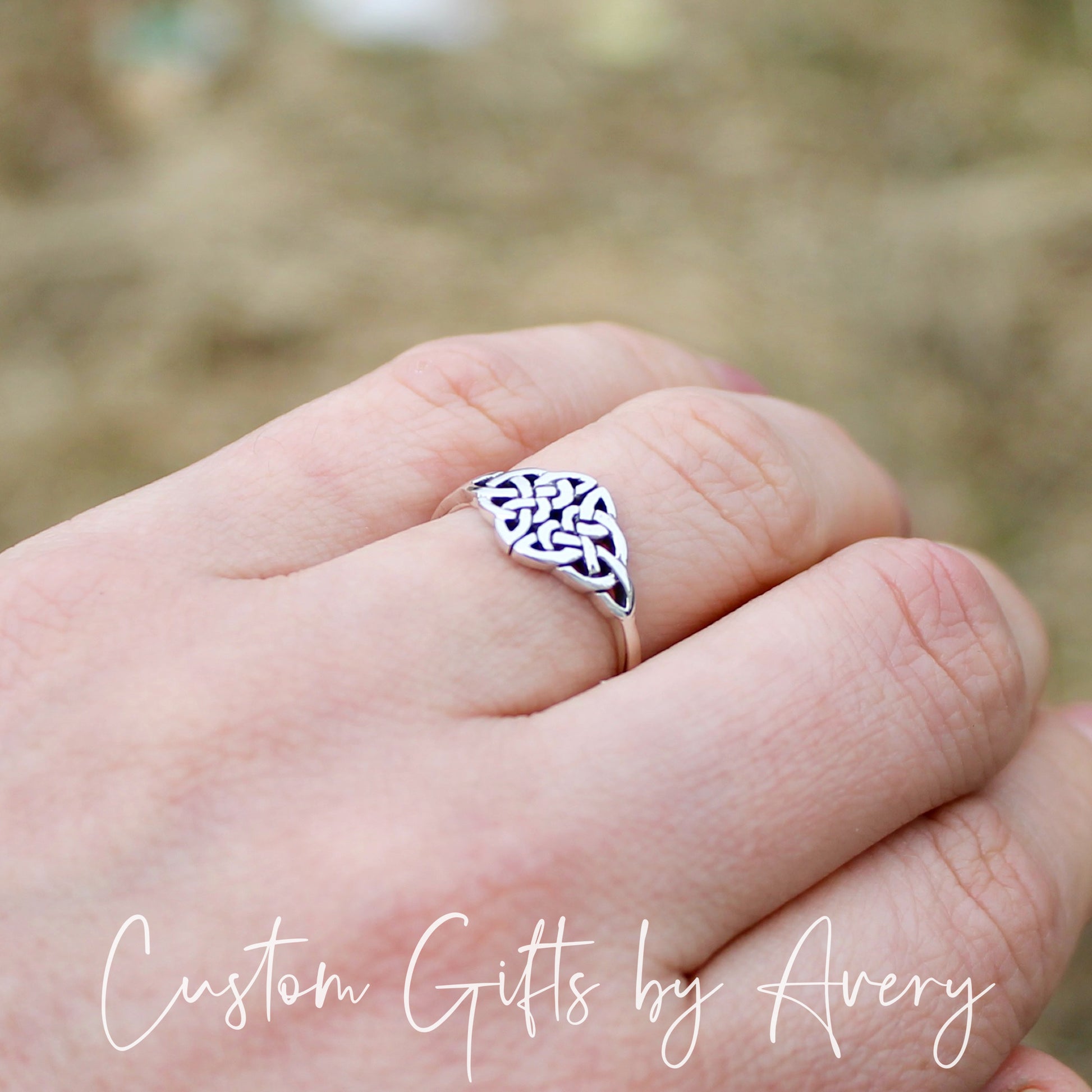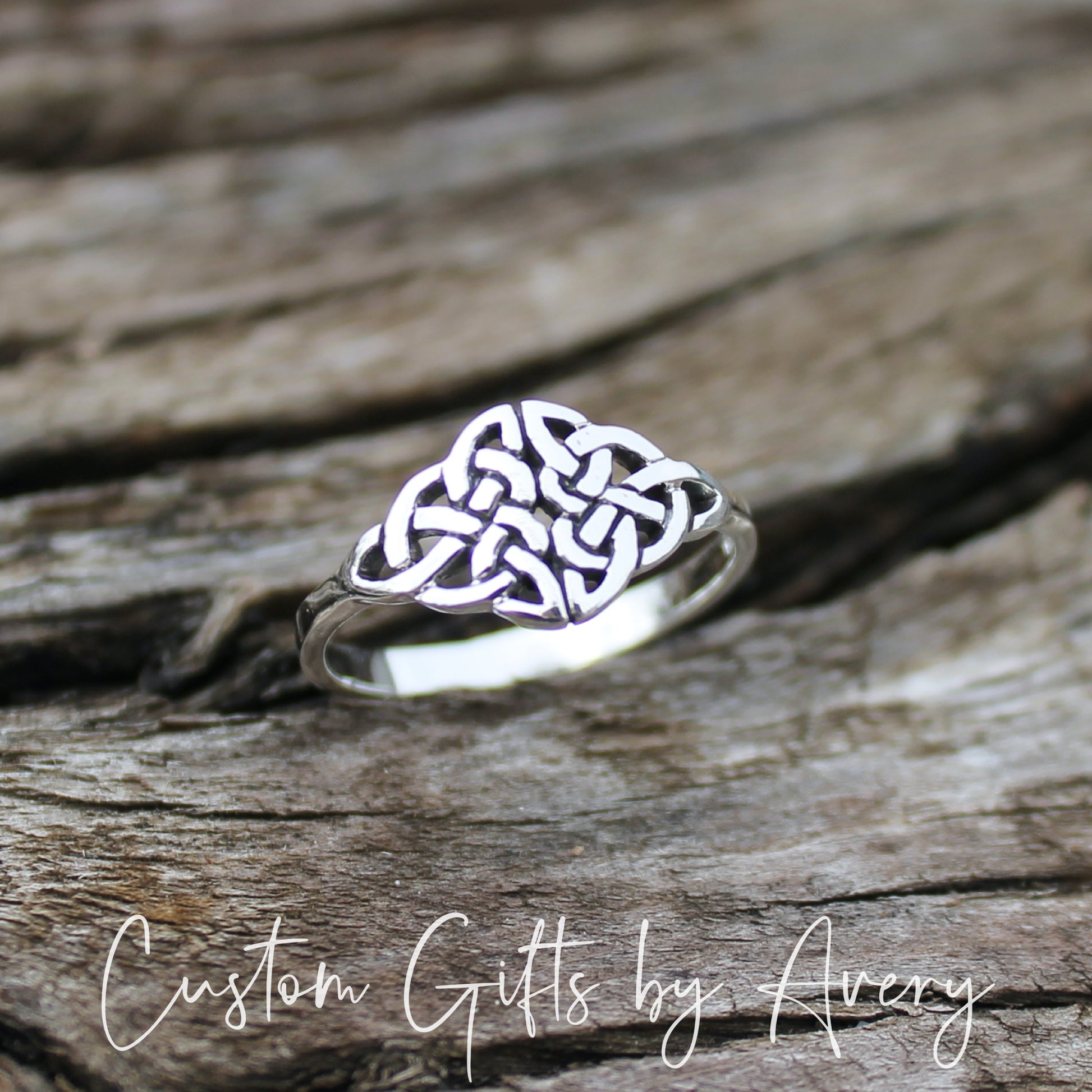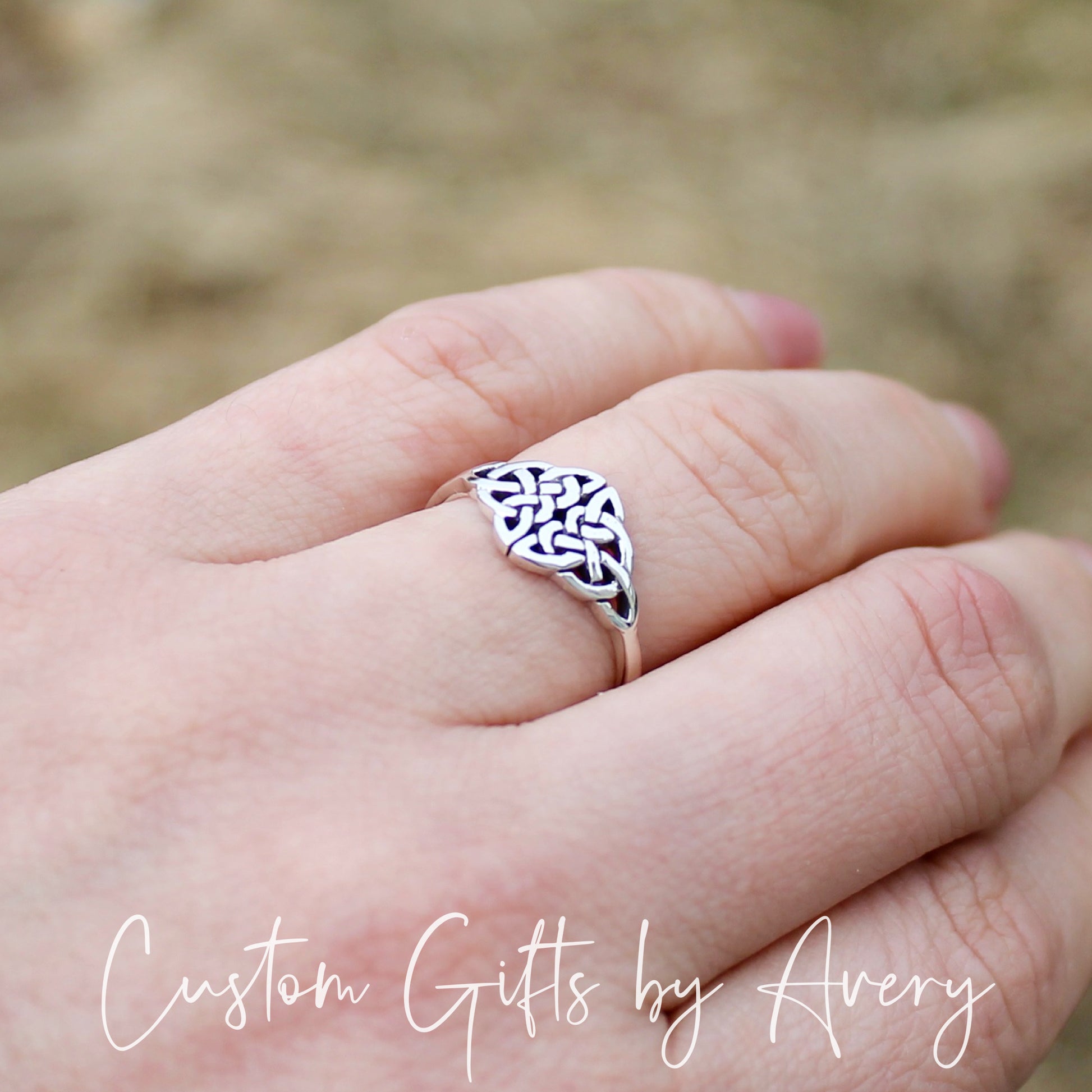 Celtic knots have no beginning or end. They are said to represent eternity, be it in loyalty, faith, friendship or love. Only one thread is used in each design which symbolizes how life and eternity are interconnected. Rich in symbolism and meaning, this is a beautiful ring.