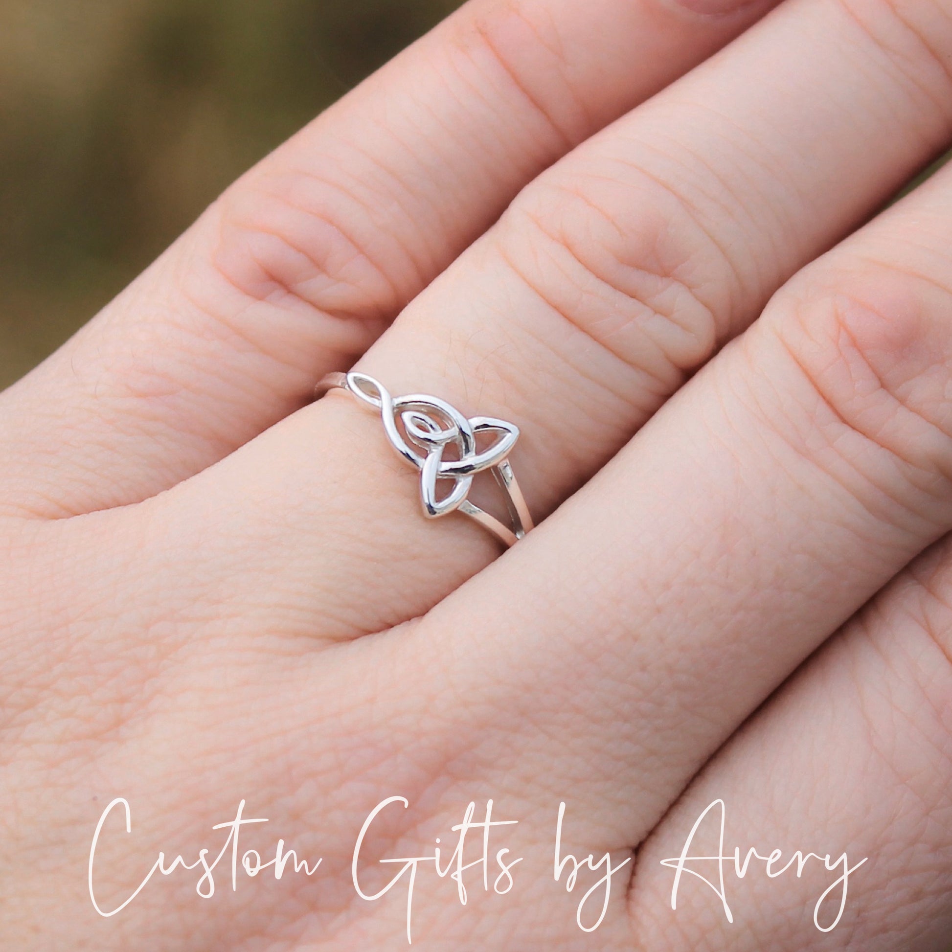 Crafted from solid .925 nickel-free sterling silver, this ring is simple & elegant - Celtic knots are have no start or finish. They are said to represent eternity, be it in loyalty, faith, friendship or love. Only one thread is used in each design which symbolizes how life and eternity are interconnected. This Celtic knot is known as the mother-child knot and the never ending knot symbolizes the eternal love a mother has for her child.