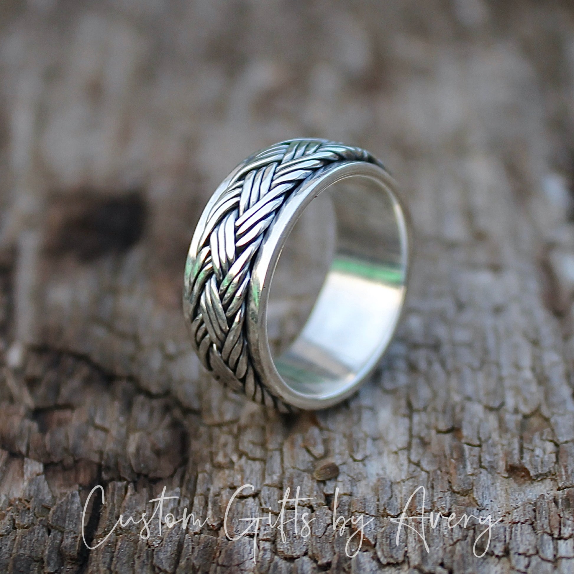 Celtic knots are have no start or finish. They are said to represent eternity, be it in loyalty, faith, friendship or love. This Celtic braided weave spins around the the band. Each section of the weave is 3 braids thick.