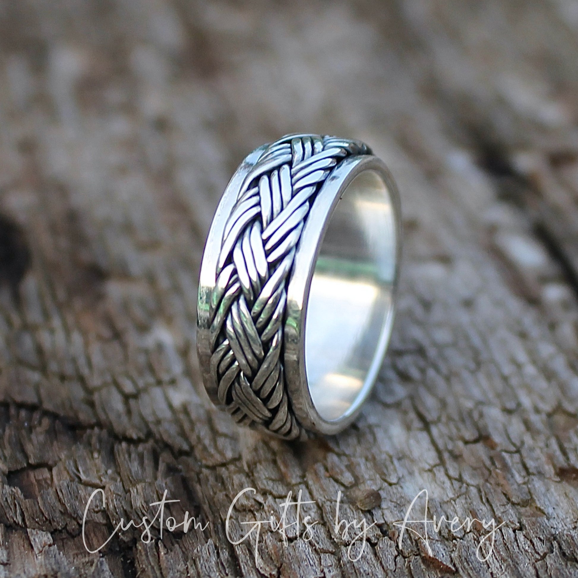Sterling Silver Celtic Triple Braided Spin Ring ~ 8mm Band