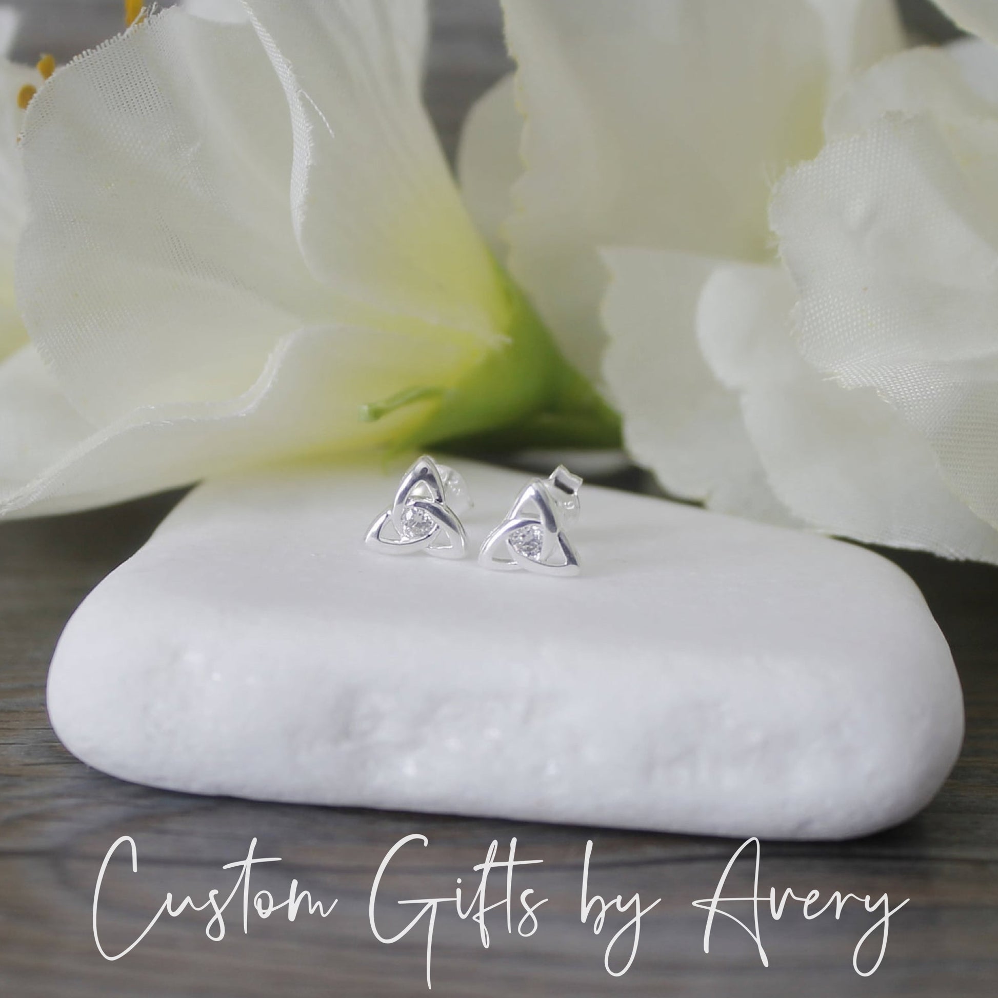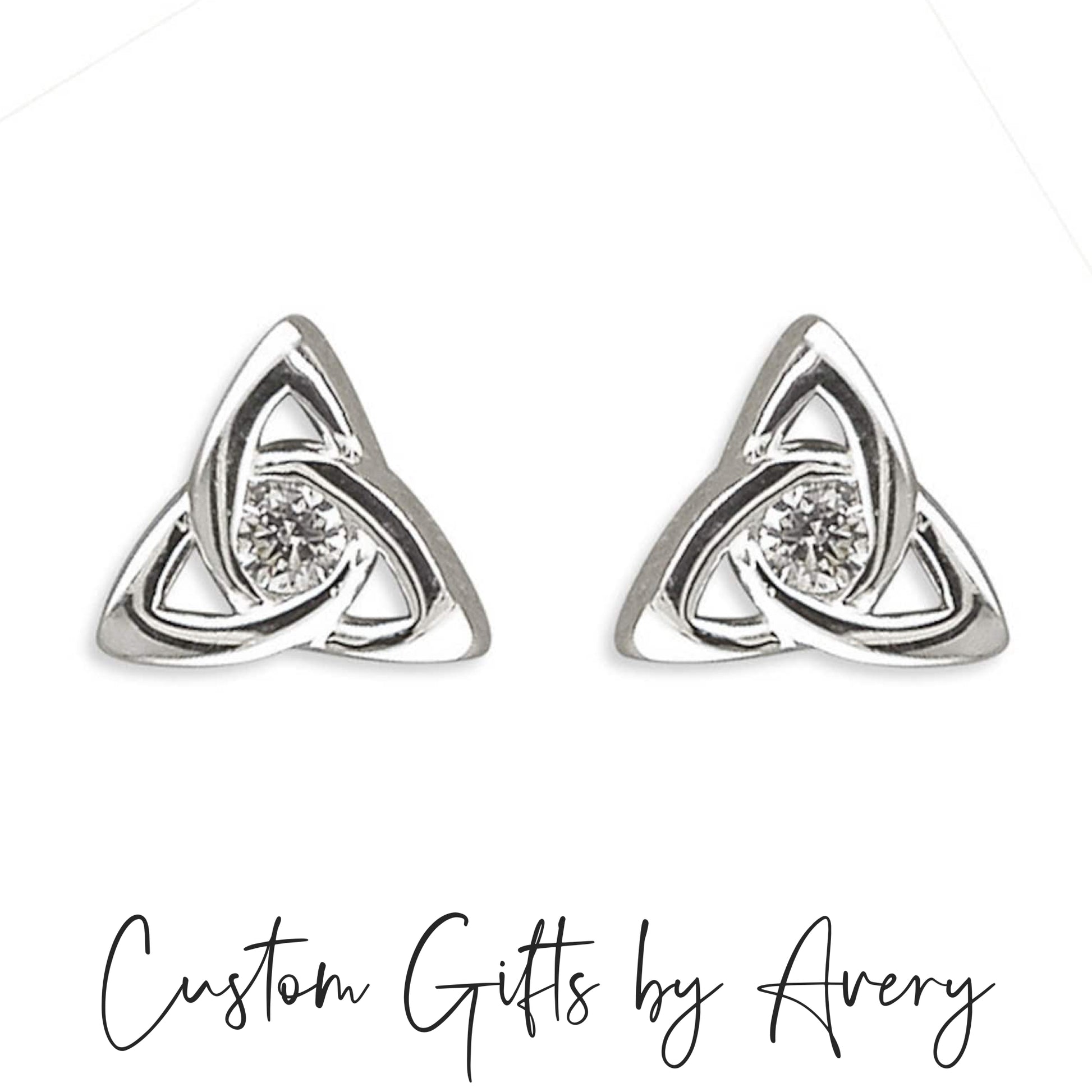 Sterling Silver Celtic Triquetta Studs with Crystals