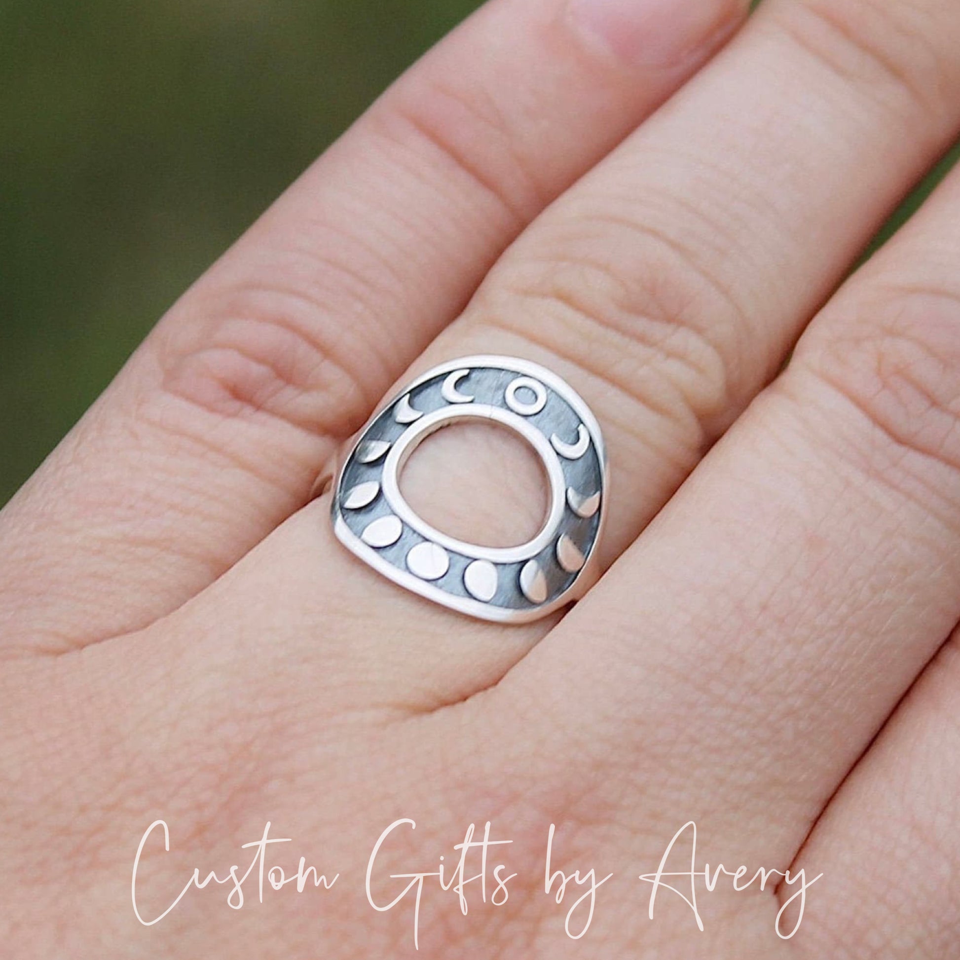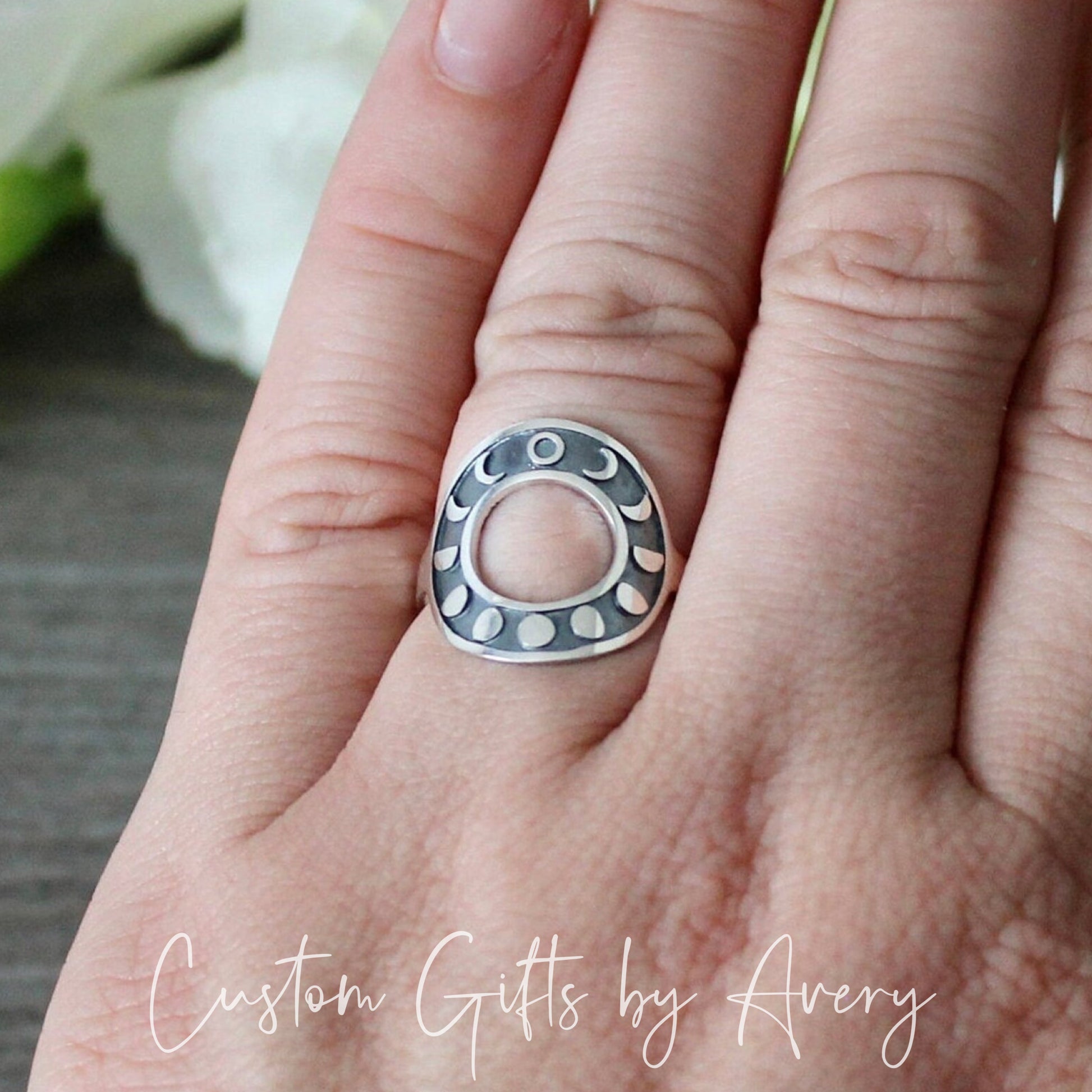 Crafted in sterling silver, this circular moon phases ring shows the never ending cycle of the moon. Each phase of the moon has its own special meaning - from new beginnings, to setting intentions, taking action, and letting go.