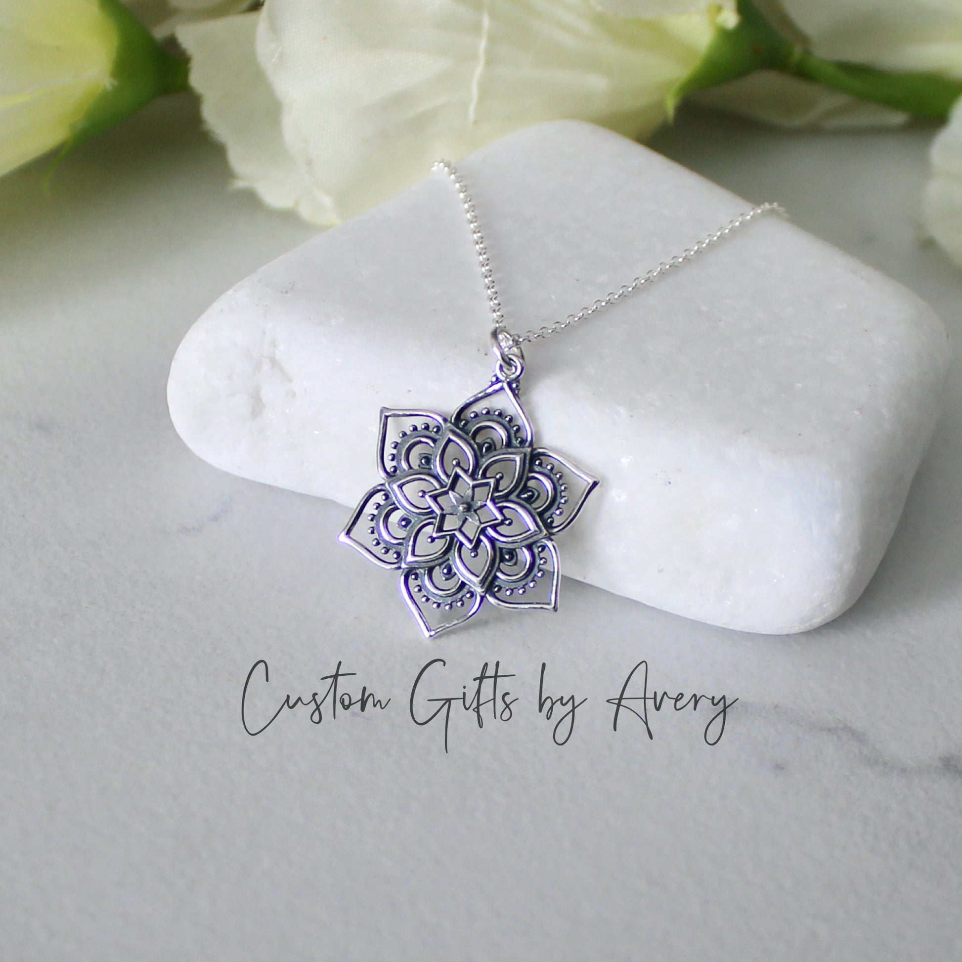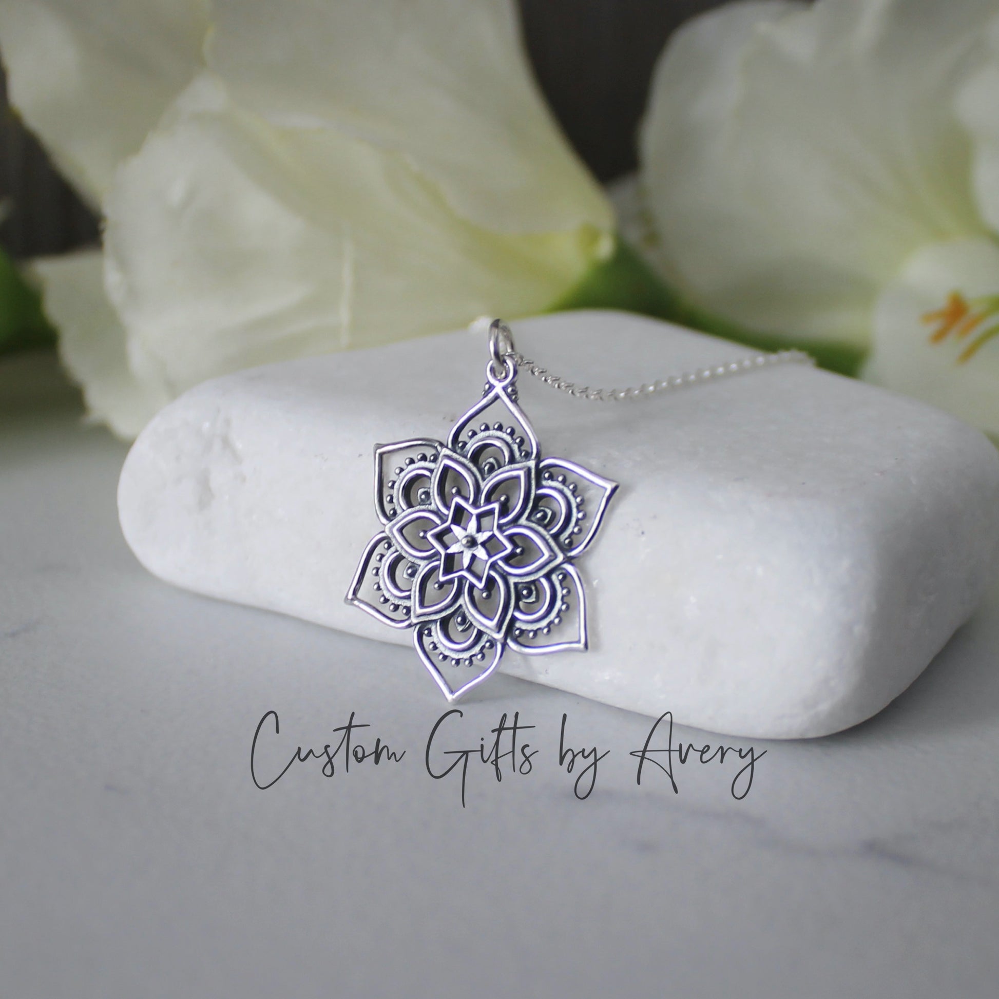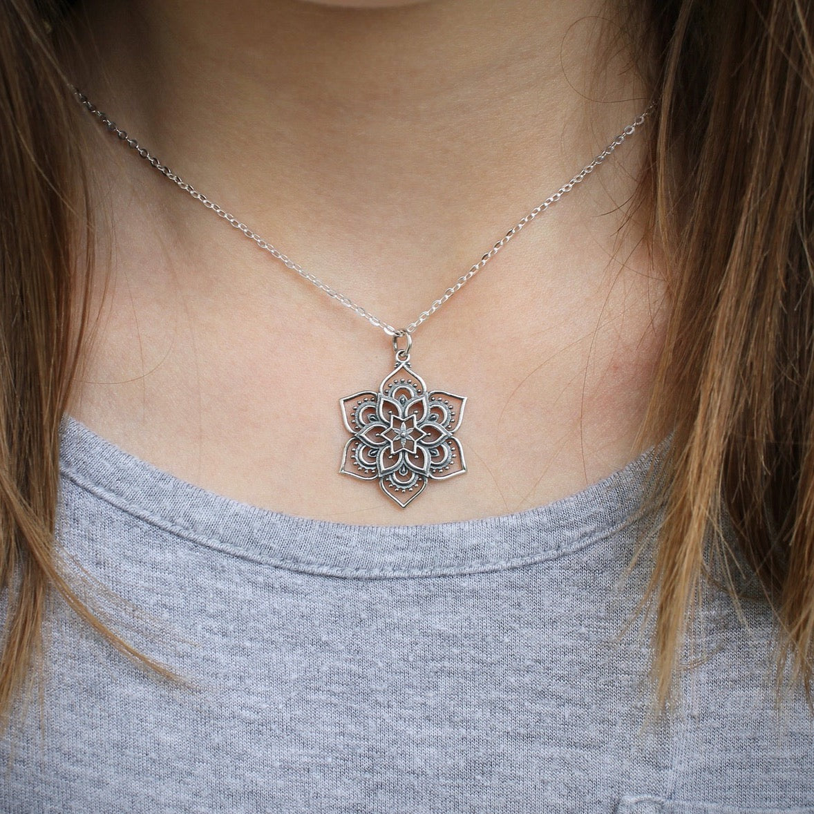 Crafted in solid .925 sterling silver, this lotus mandala pendant is truly a beautiful piece. Incredibly detailed, the open work design of this pendant is 3 dimensional and is a mixture of polished and oxidized silver to bring out the finer details in this piece.