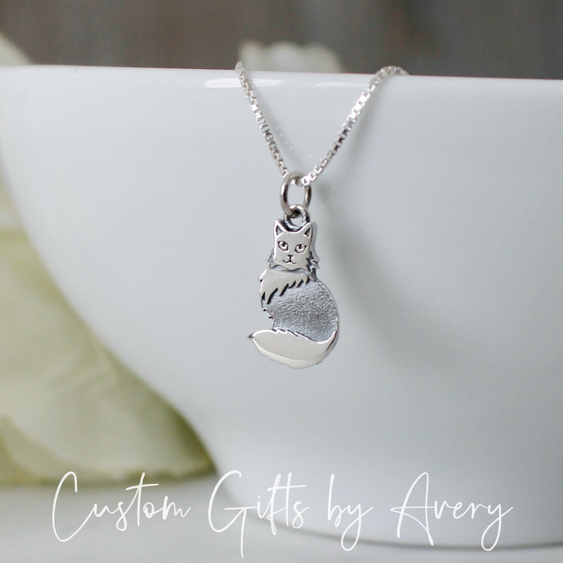 Crafted in sterling silver, this layered fluffy cat is oxidized to highlight the detailing on this 'purr-fect' little pendant.