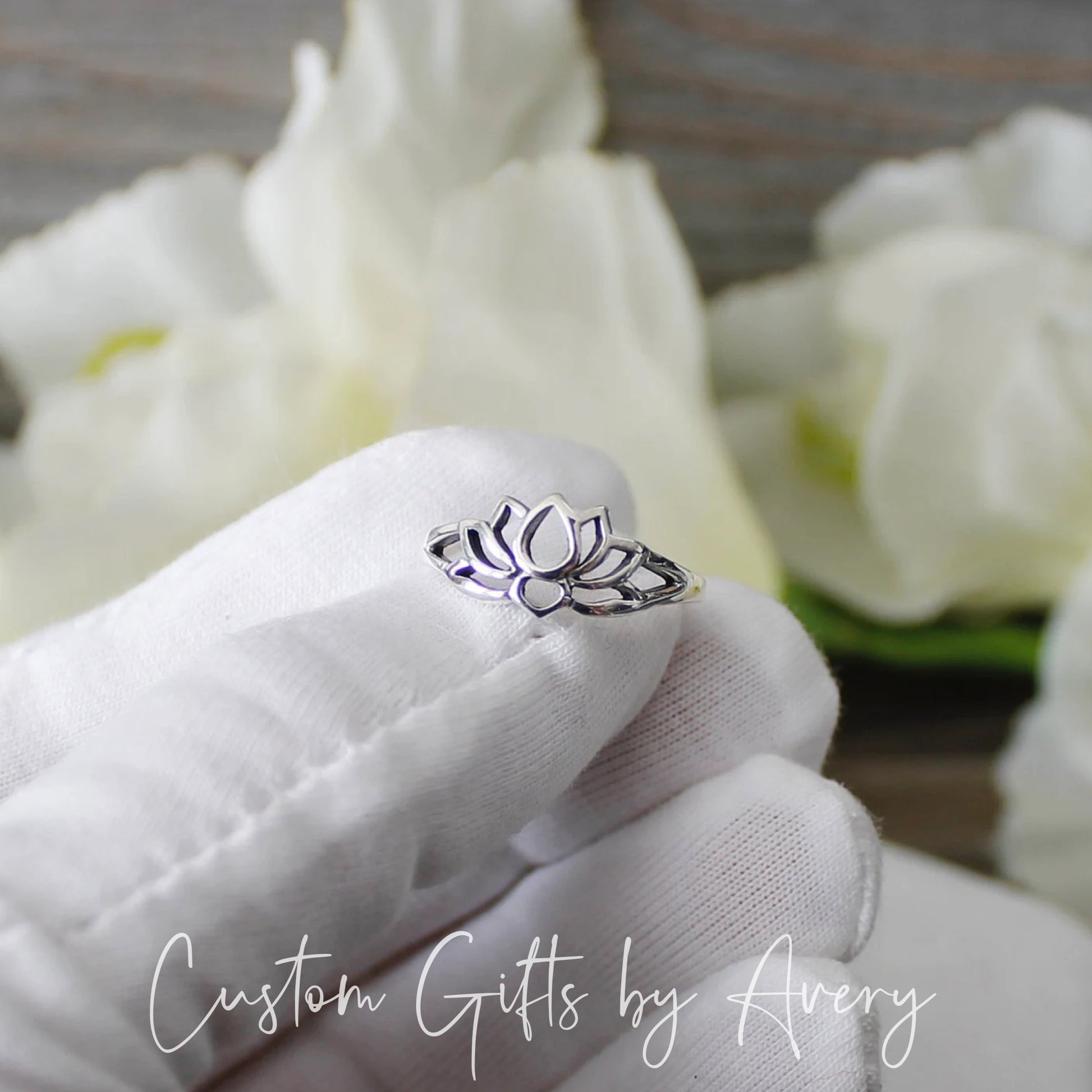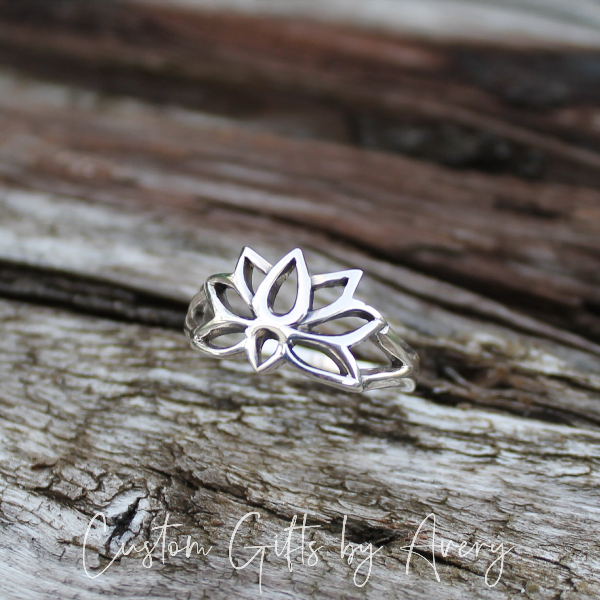This beautiful flower ring is inspired by the strength and beauty of the lotus. Born in mud, sludge, and murky waters this beautiful flower not only blooms but flourishes. For many, the lotus is an unshakable symbol of strength, beauty, and positivity. Like the lotus, we too can choose to rise above life's challenges, grow, and flourish.