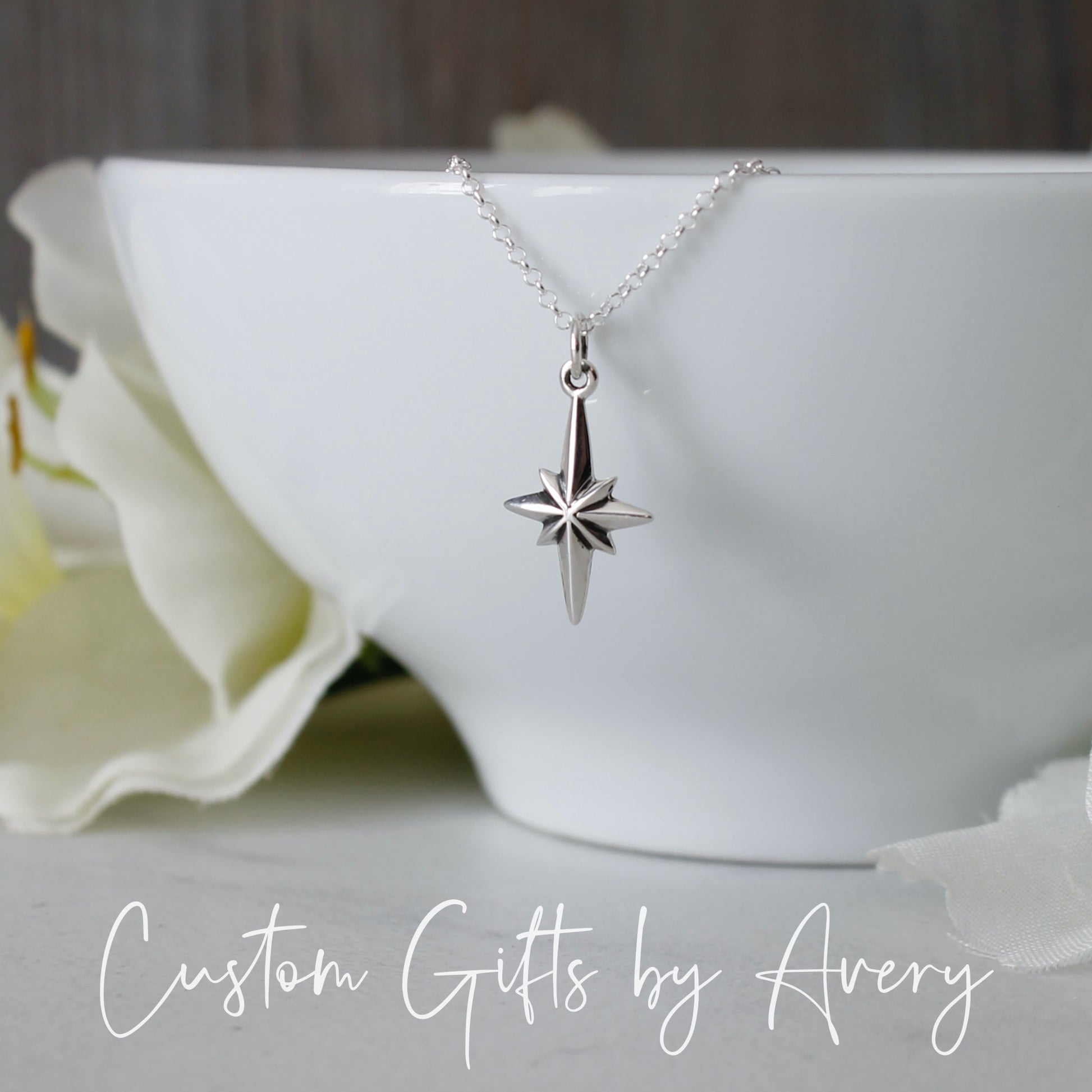Crafted in sterling silver North Star Necklace features the brightest star, Polaris. With its 3 dimensional detailing, this raised pendant makes for a beautiful minimalistic piece.
