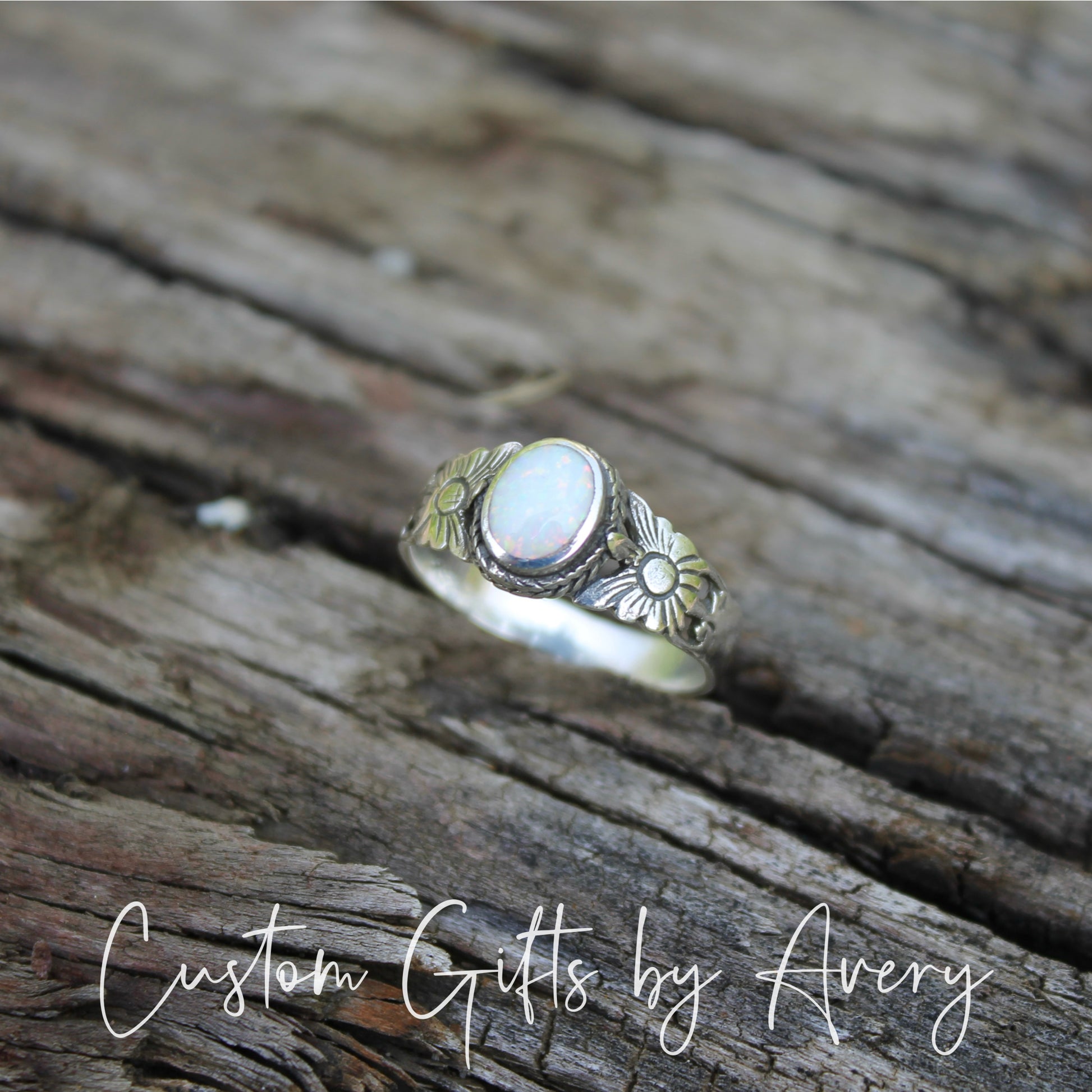 An absolutely gorgeous white lab opal gemstone ring crafted in solid .925 sterling silver. The pinfire in this opal is beautiful in the light and flashes a multitude of colours. This ring makes a beautiful gift for those born in October, or anyone who loves the beauty of a classic opal.