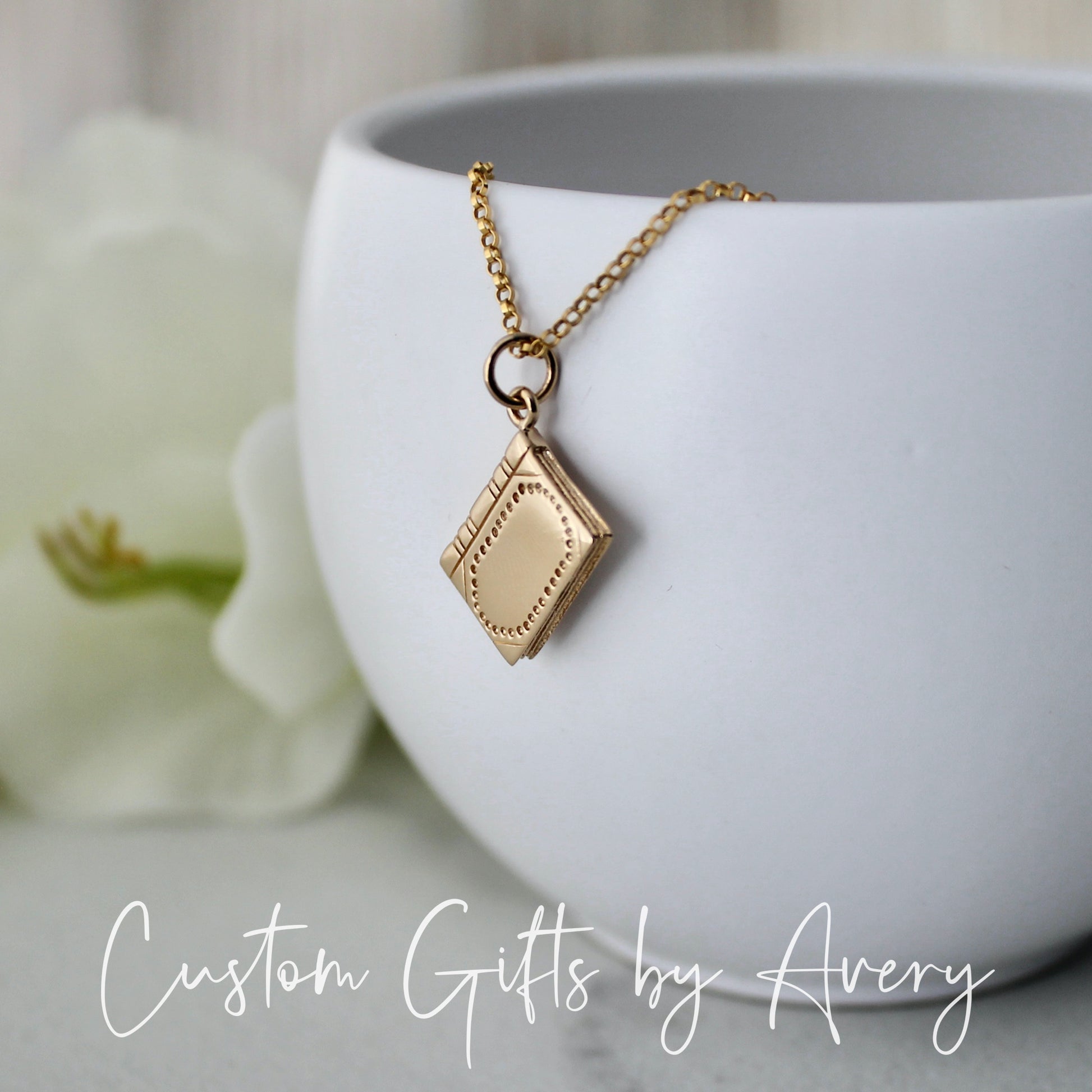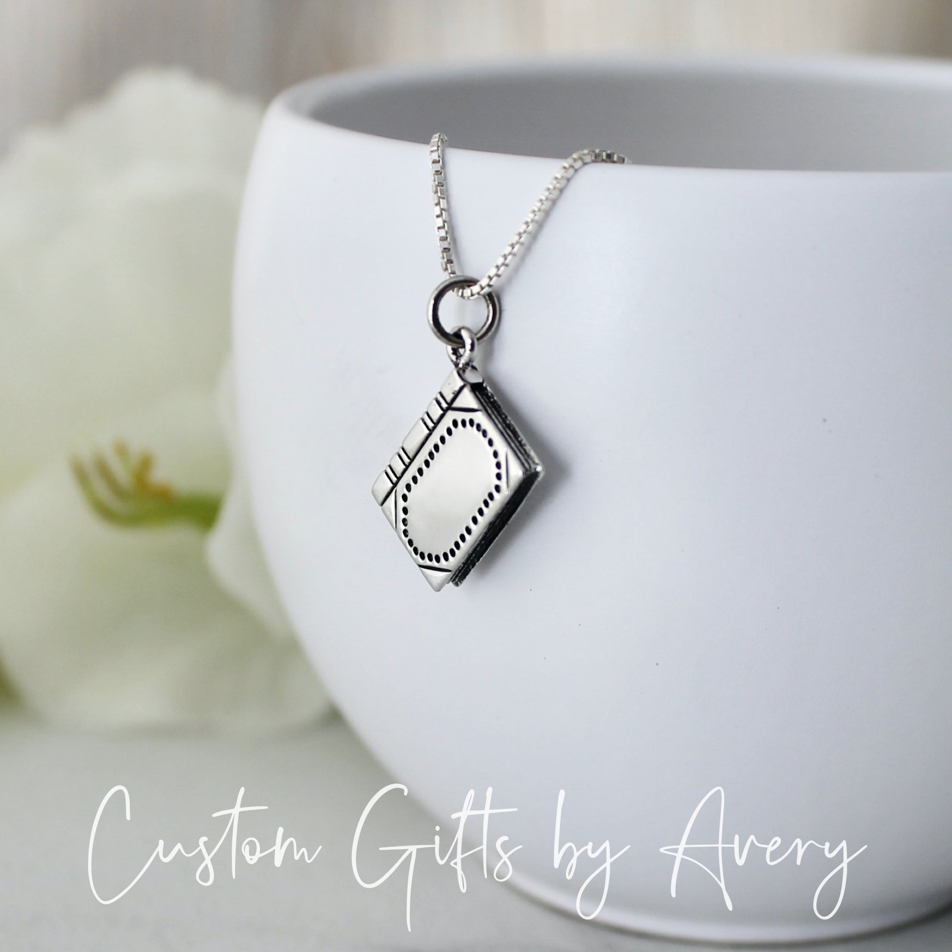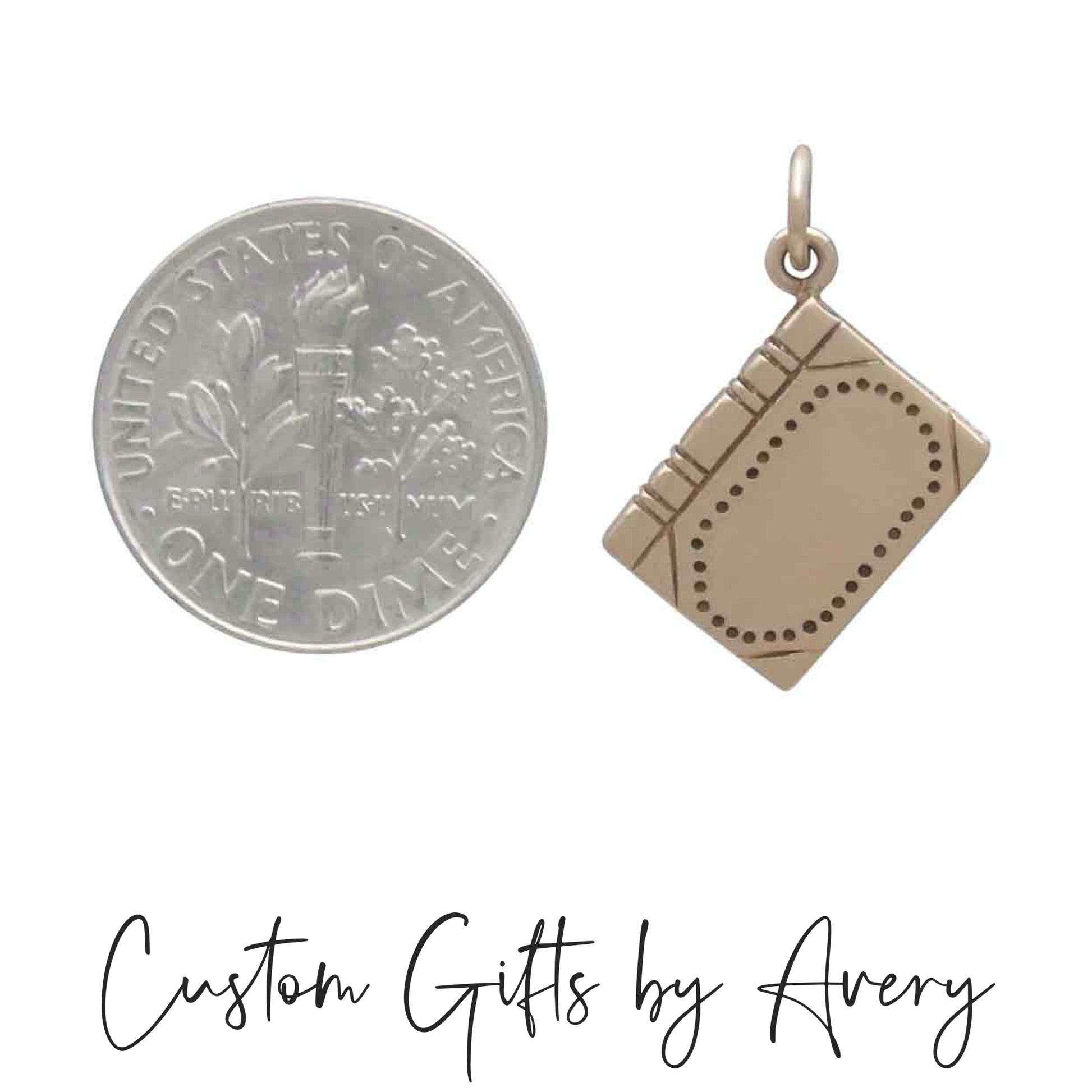 Add a touch of literary elegance with our petite 3D book charm necklace. Delicately crafted in your choice of sterling silver, or golden bronze this detailed pendant is the perfect accessory for any bookworm (or 'book dragon') in your life. No need to judge a book by its cover this piece will speak for itself.