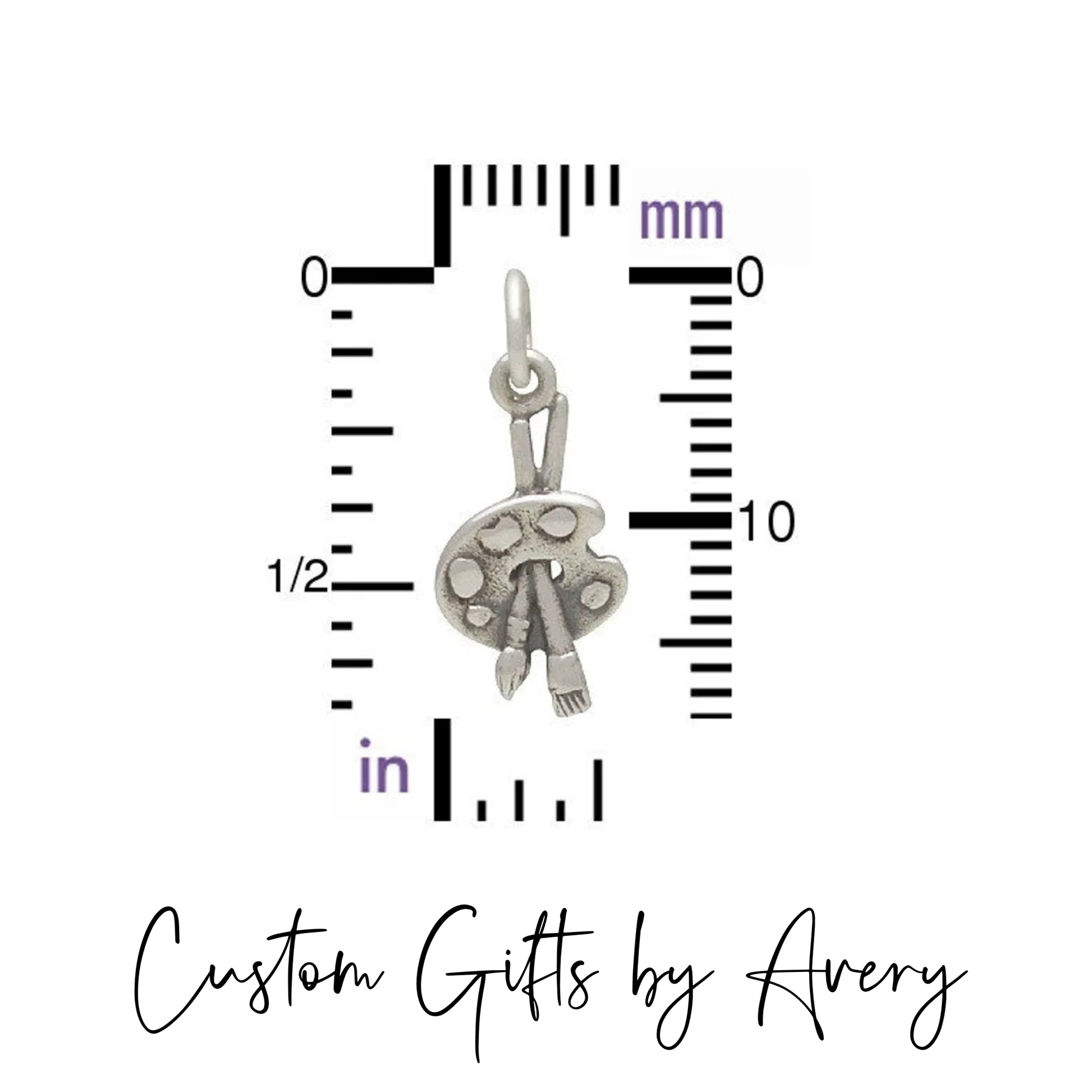 A small but detailed paint brush and palette crafted in solid .925 sterling silver. It makes a perfect gift for artist in your life.
