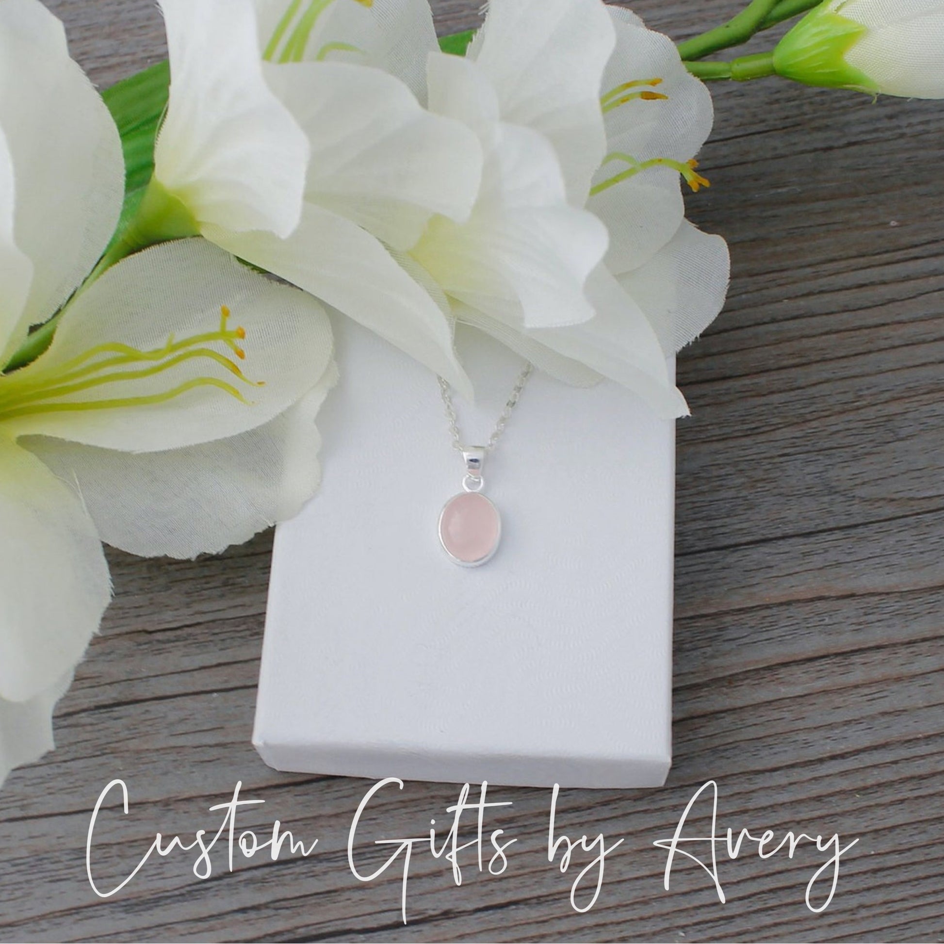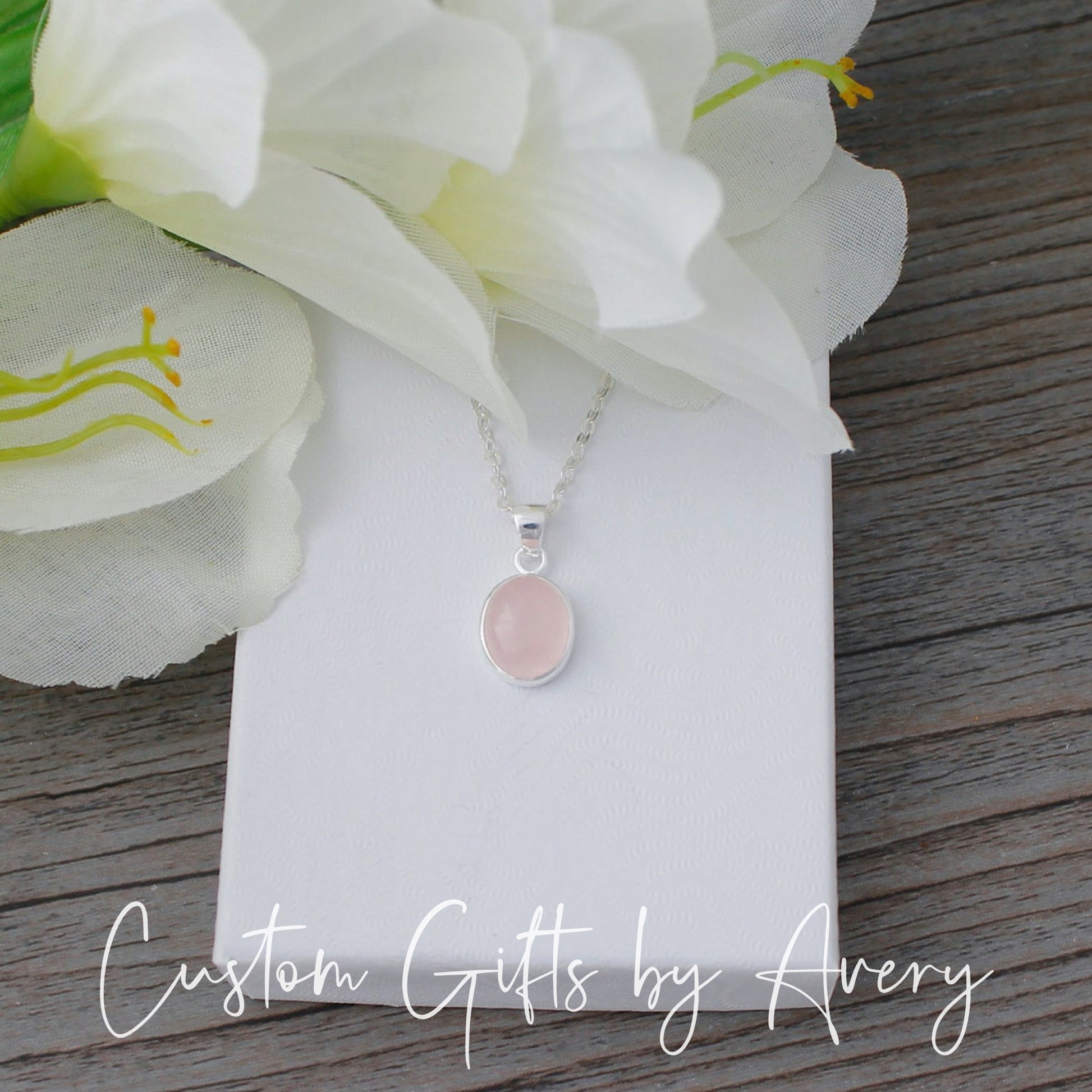 This simple and elegant sterling silver necklace features a beautiful pink rose quartz gemstone. This soft pink gemstone is set in a .925 sterling silver bezel setting and comes in your choice of 3 sizes.