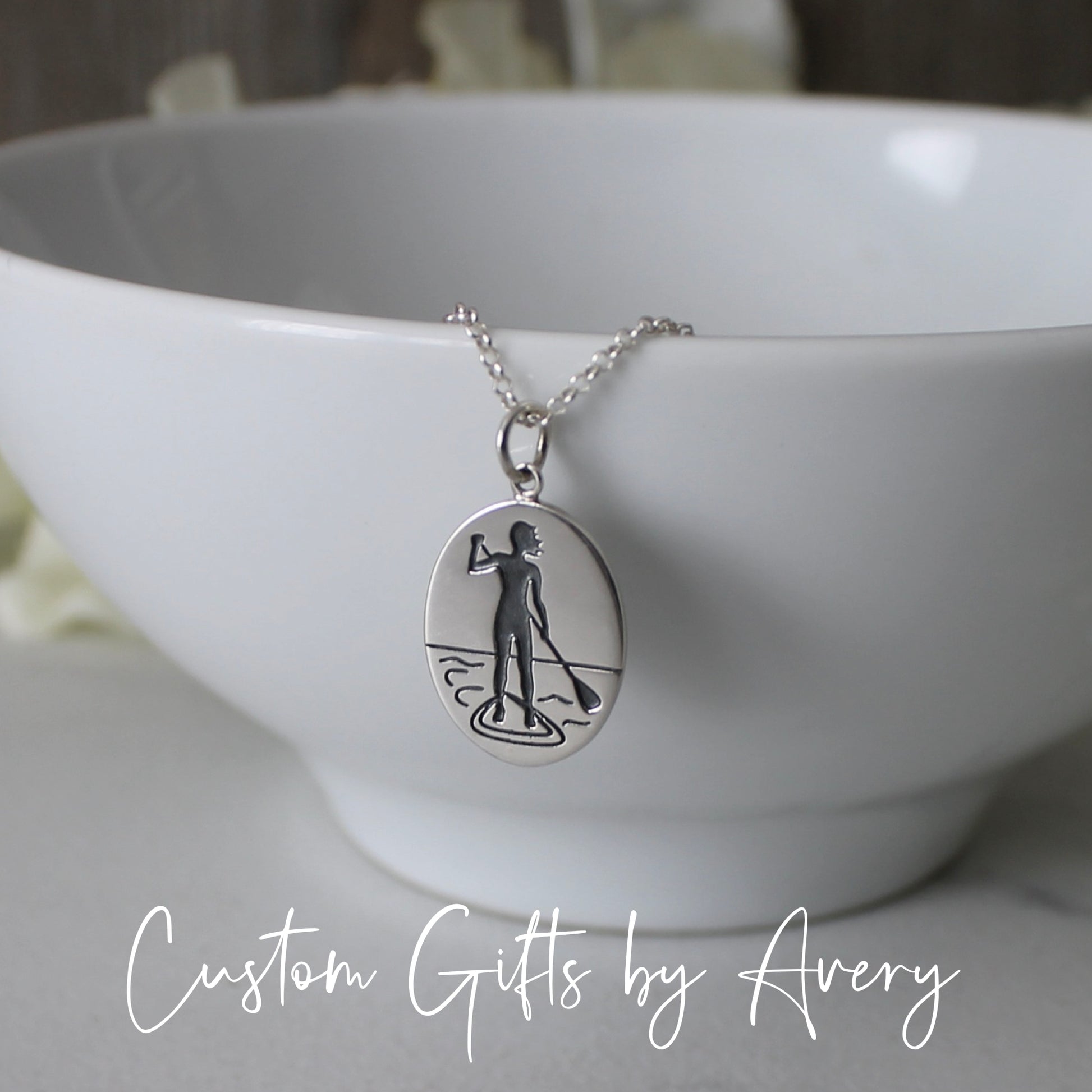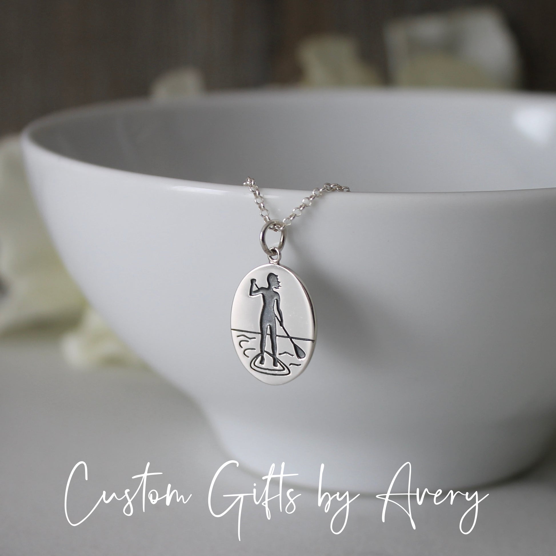 Sterling Silver Stand Up Paddle Board Necklace