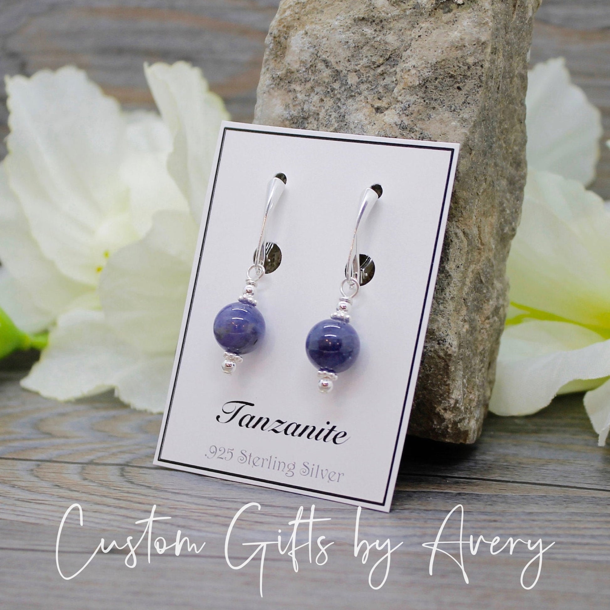 These beautiful gemstone earrings are created with grade AA tanzanite gemstones. These are a beautiful cool purple. These beautiful purple gems are paired with sterling silver accents. They hang from high quality hypoallergenic (nickel-free) .925 sterling silver lever backs.