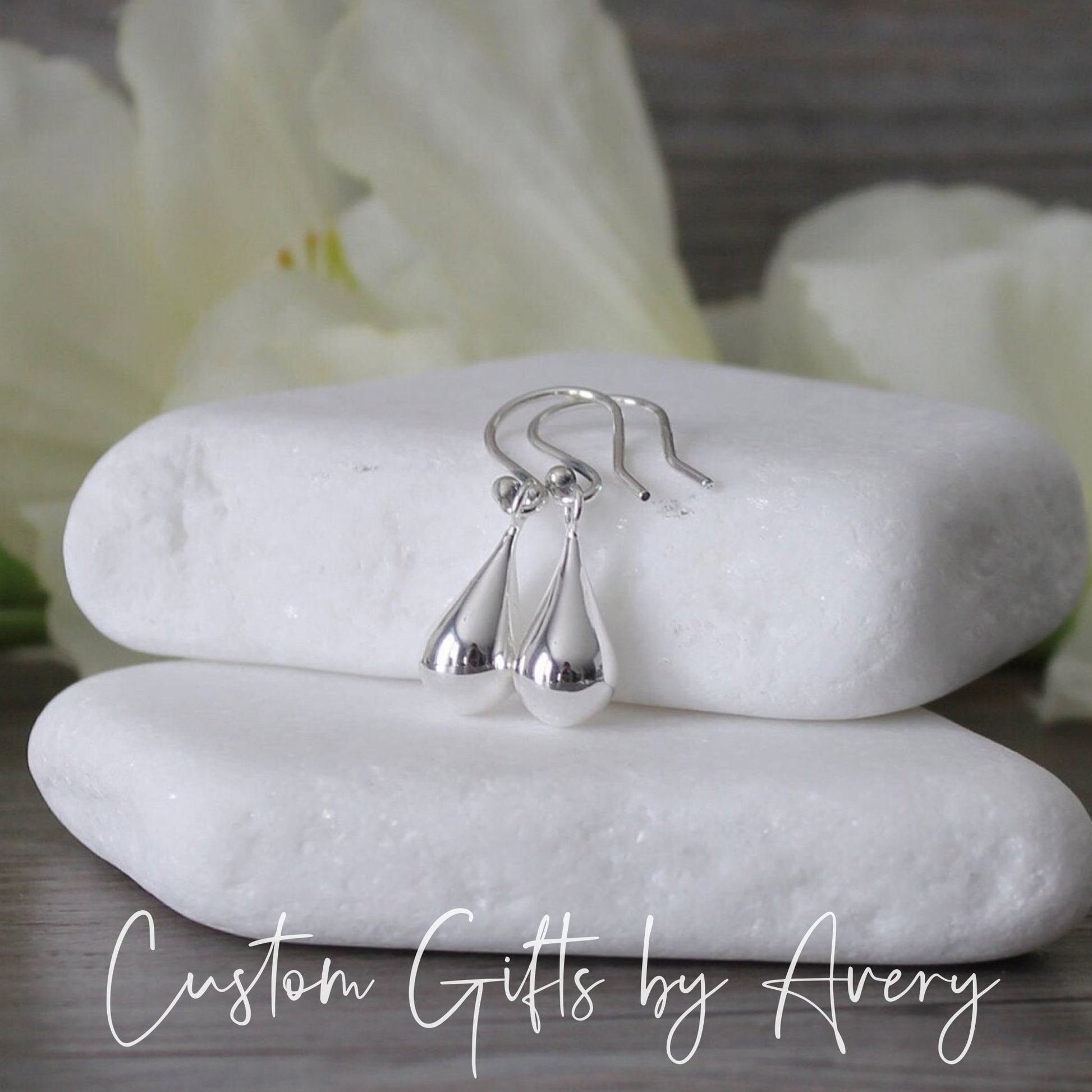 These gorgeous little teardrops are bright silver and incredibly lightweight ~ they are perfect for everyday wear. Choose between sterling silver fishhooks or sterling silver lever backs. Fishhooks come with small rubber backings to secure earrings. A sterling silver polishing cloth is included.