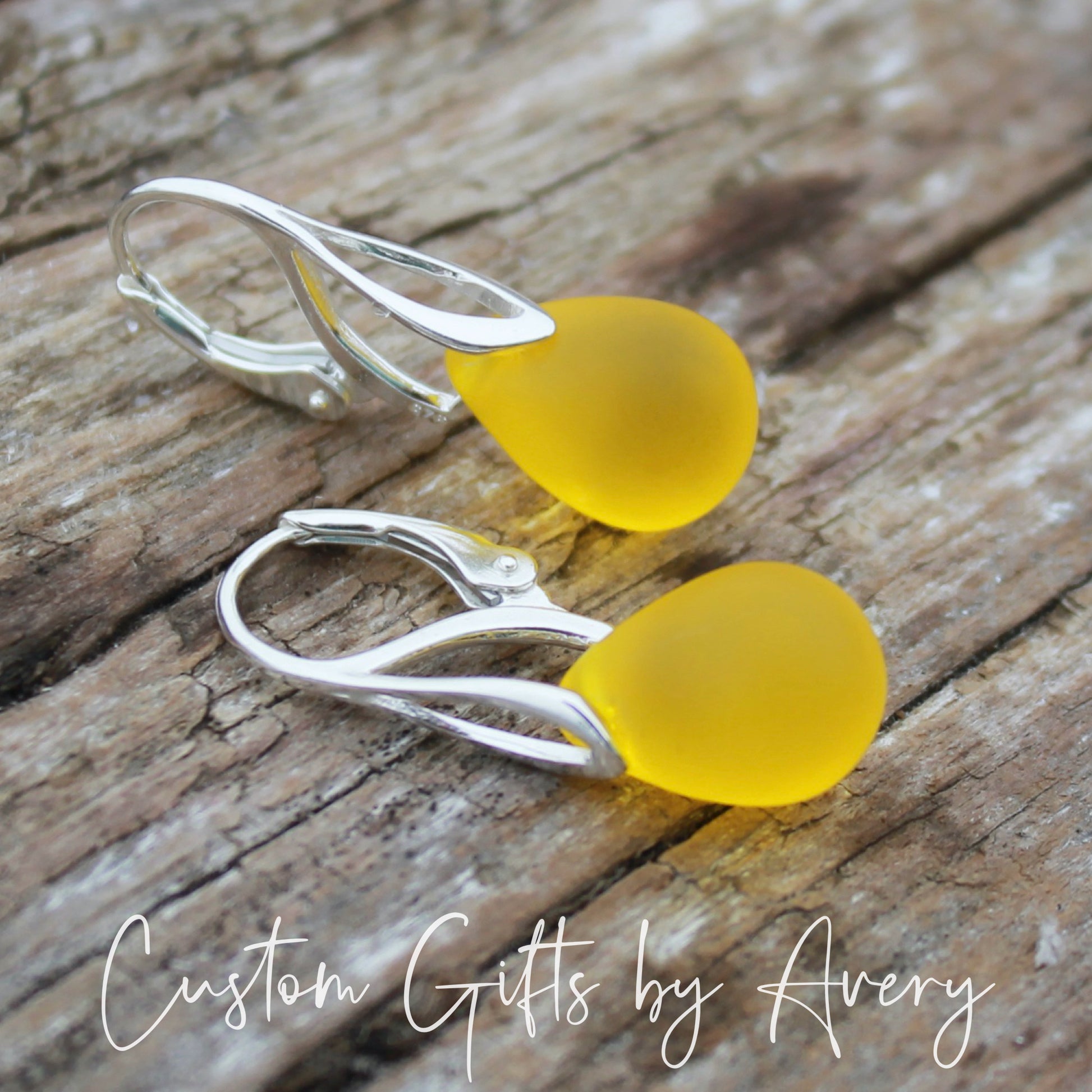 Sunflower Yellow Cultured Sea Glass & Sterling Silver Earrings