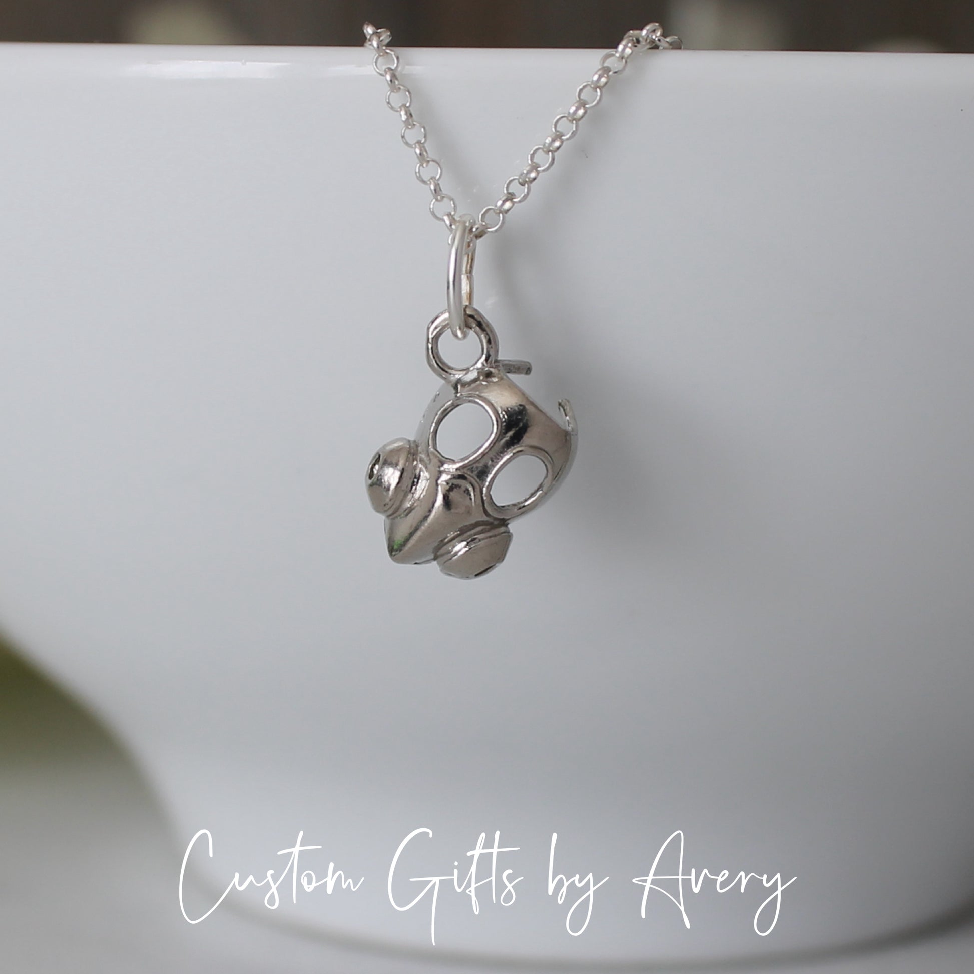 Tiny Sterling Silver Gas Mask Necklace