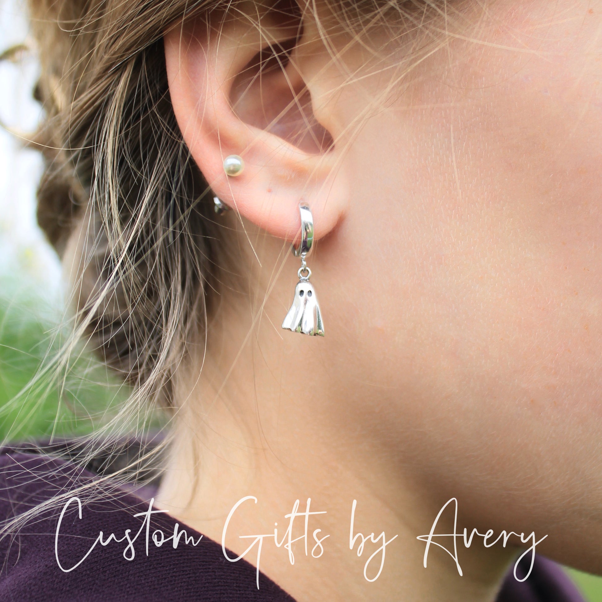 Tiny Sterling Silver Ghost Huggie Hoop Earrings