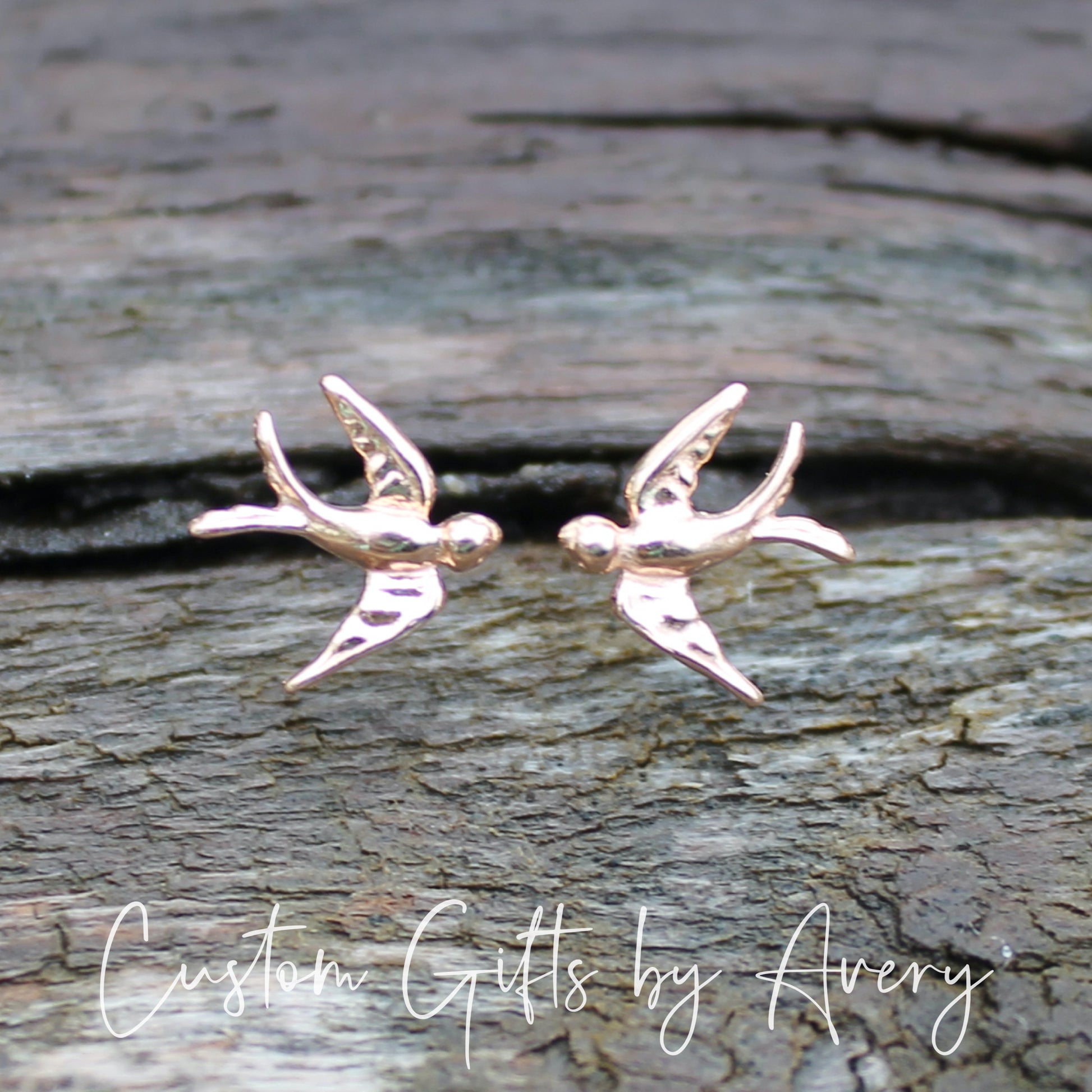 Tiny Swallow Studs in Sterling Silver or Rose Gold