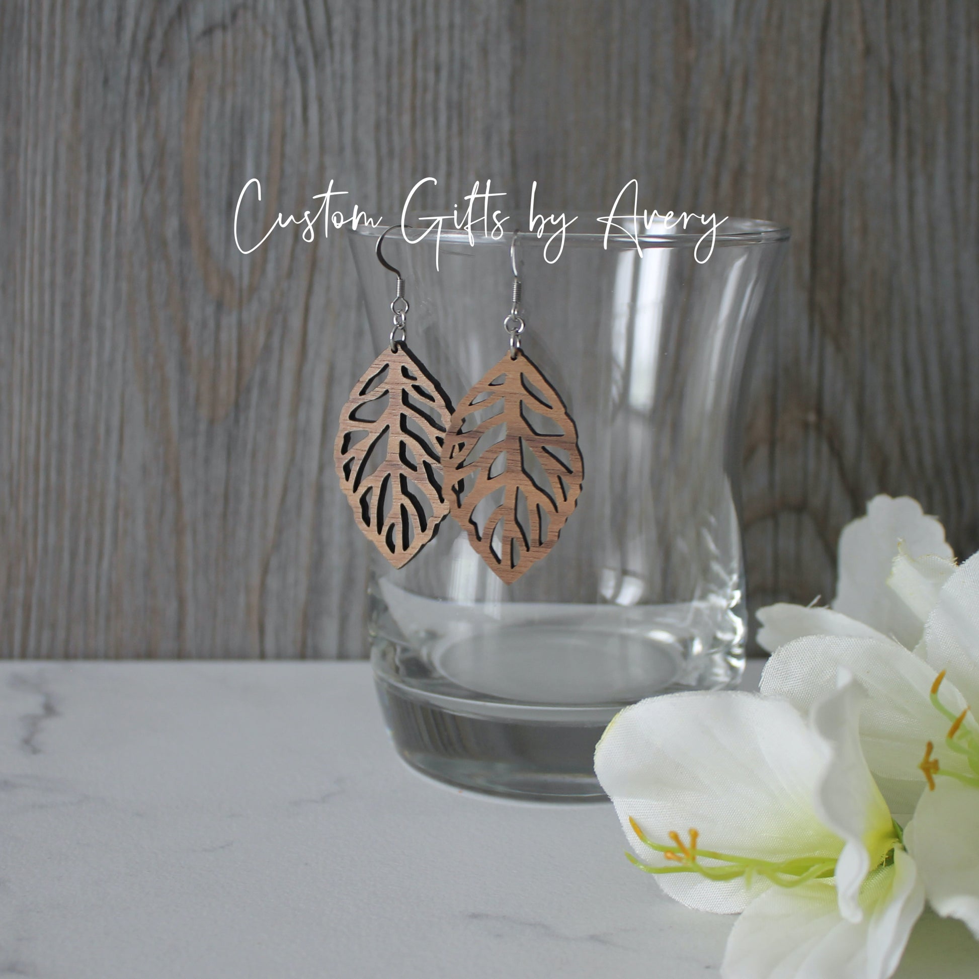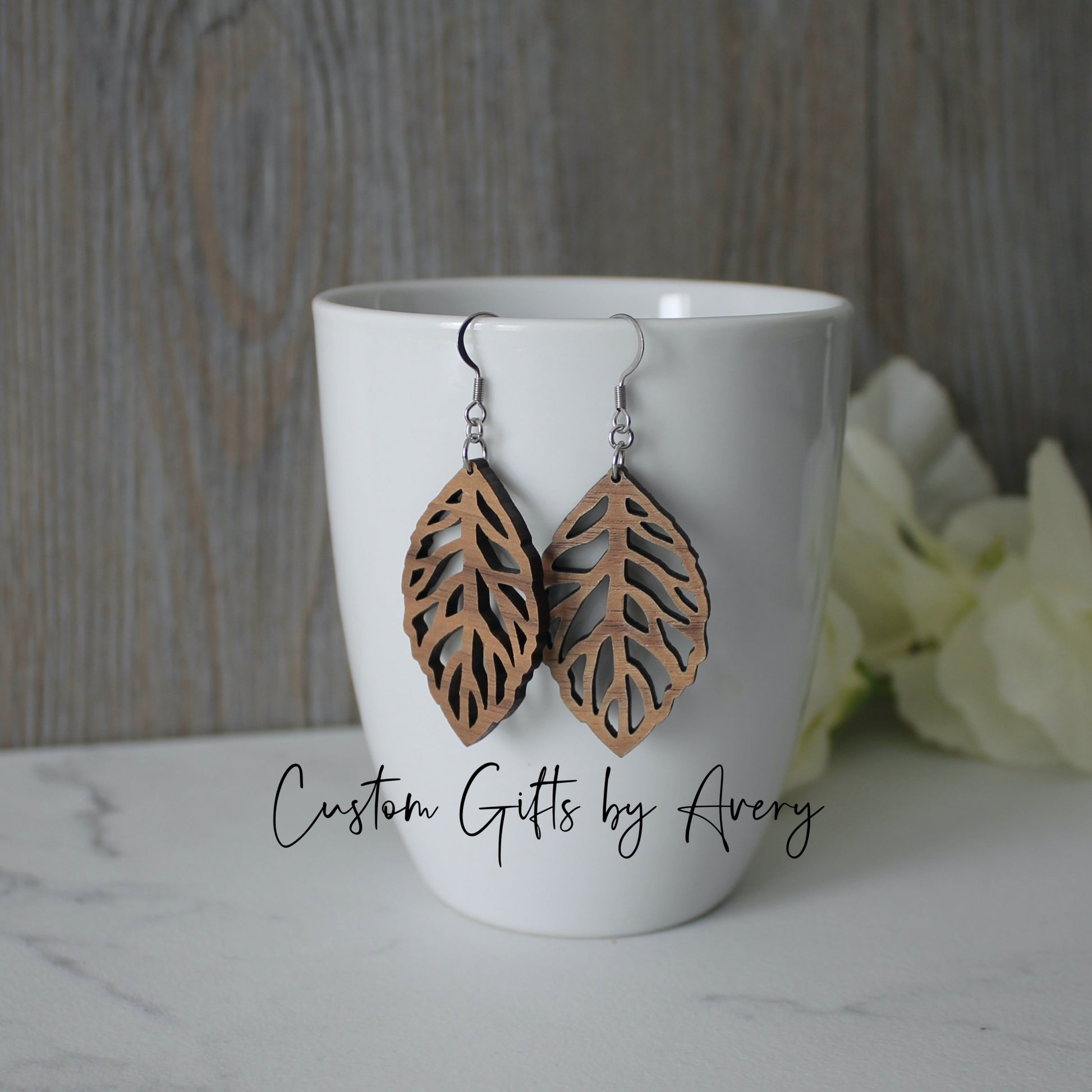 These delicate and intricate leaves have been laser cut from walnut wood. Despite their size, they are incredibly lightweight and very comfortable to wear. They hang from 316L grade stainless steel earring hooks. Stainless steel hooks are the same grade used in industrial and food-processing applications- they are moisture resistant moisture and will not oxidize.